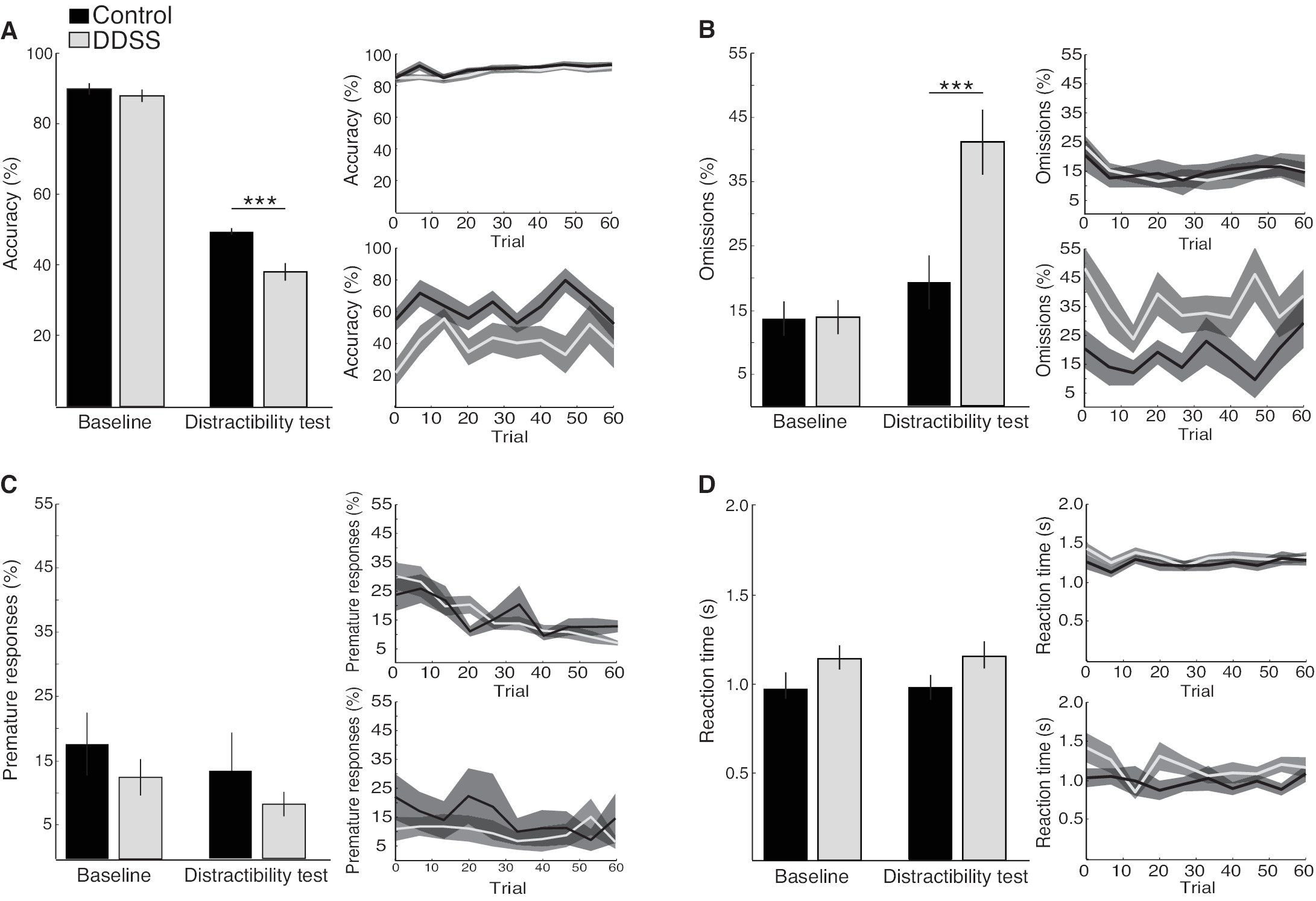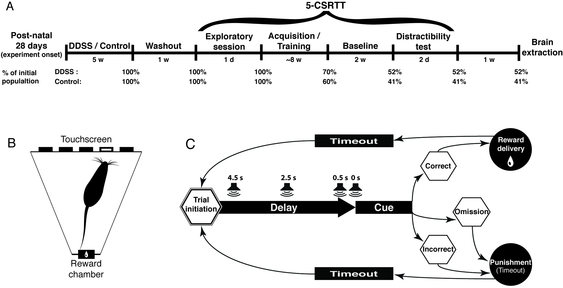 To probe biology, I developed a rat model: Juvenile rats received “developmental dynamic salient stimulation” (DDSS)—rapidly changing odors mimicking digital notifications—vs. static controls (Hadas et al., 2016) (Hadas, 2016). DDSS rats acquired the 5-Choice Serial Reaction Time Task faster but showed distractibility (more omissions, variable RTs under noise).