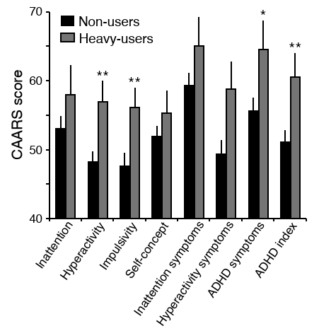 Inspired by ADHD patterns, we tested if heavy smartphone use induces similar traits, focusing on the right PFC—a key hub for impulse control, distinct from the left dorsolateral PFC (DLPFC) targeted in depression circuits. Comparing 16 heavy users to 35 non-users (basic phones), heavy users had elevated CAARS scores (inattention, impulsivity, hyperactivity) and Concern for Appropriateness Scale (CAS) values, plus steeper delay discounting and poorer numerical accuracy (Hadar et al., 2017).